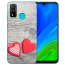 Huawei P Smart 2020 TPU Hülle mit Fotodruck Herzen auf Holz Etui
