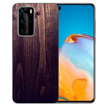 Silikon TPU Hülle mit Fotodruck HolzOptik Dunkelbraun für Huawei P40 Pro